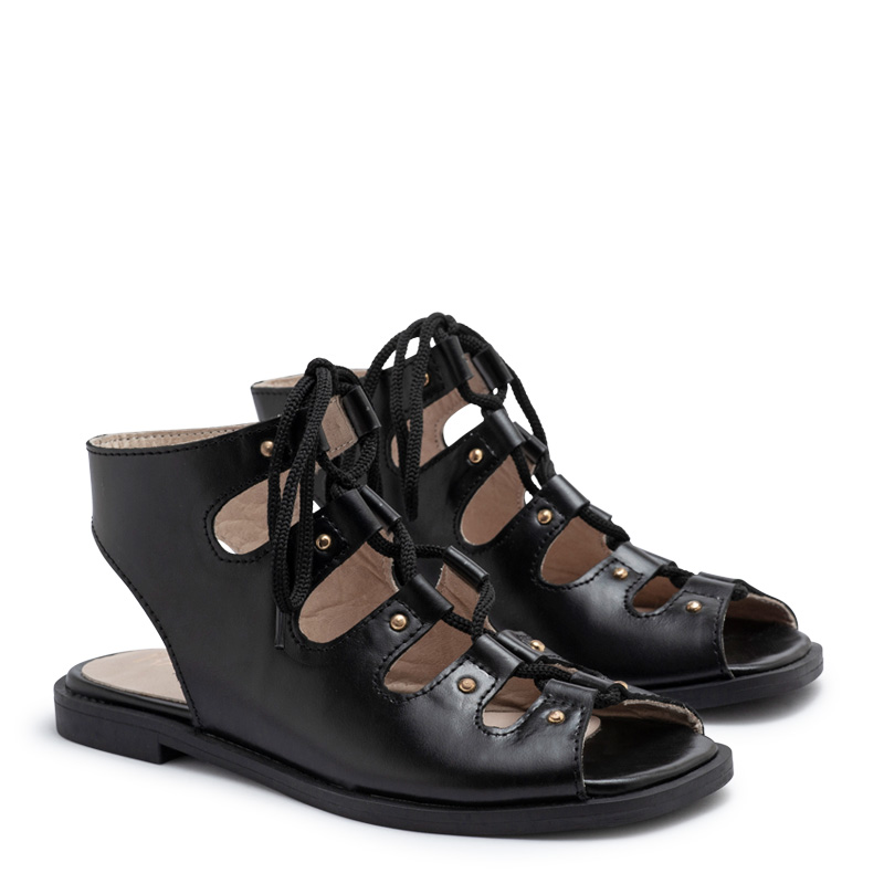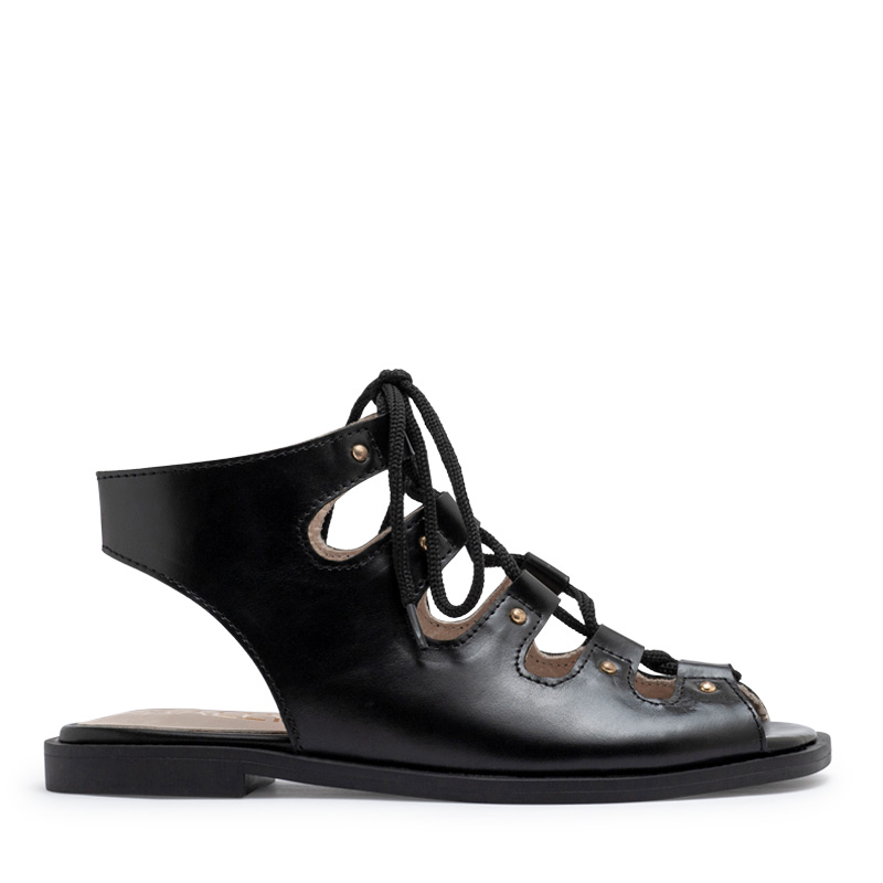 Sandalia romana acordonada de cuero negro