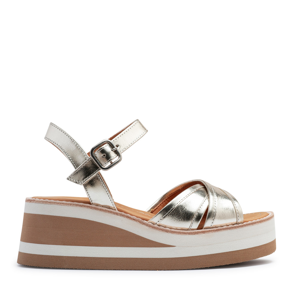 Sandalia de cuero color platinocon plataforma