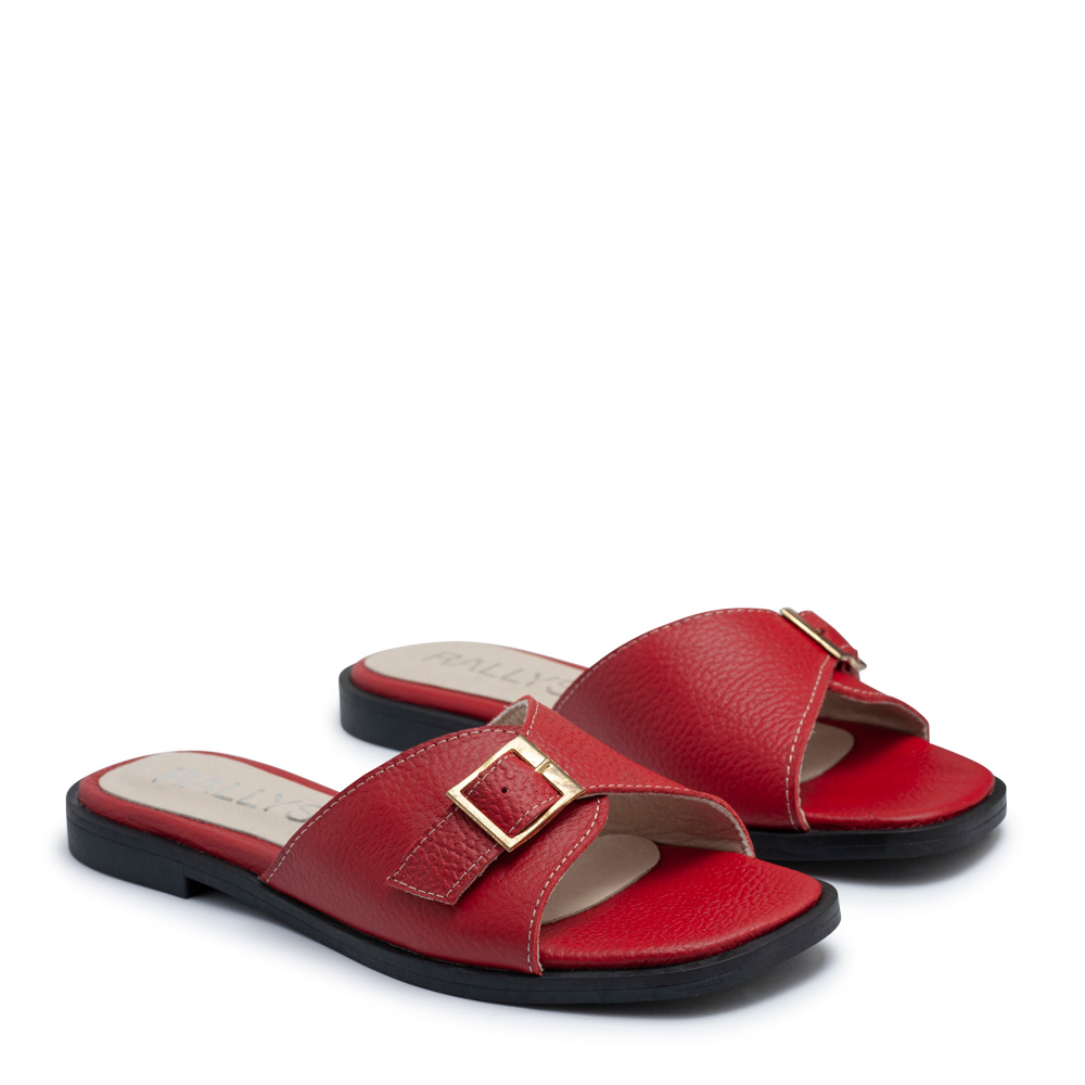 Zueco bajo de cuero rojo